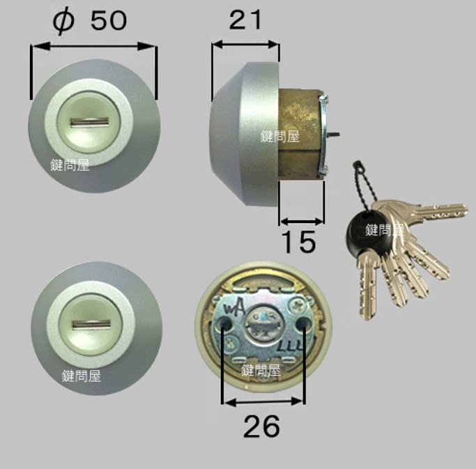 LIXIL用交換シリンダー、MIWA DN・PSキーシリンダー形状